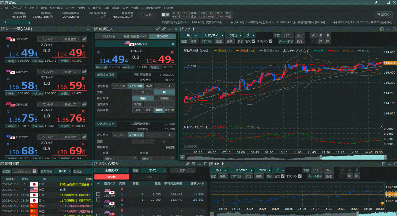 PC版外貨ex for WindowsはFX上級者向けの取引ツールで自分好みにカスタムして利用できます。